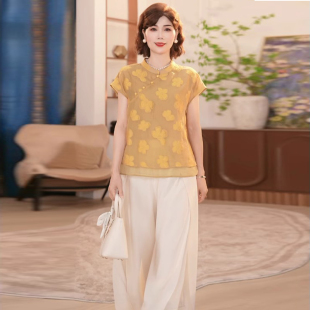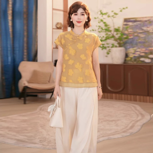 妈妈装 国风小西装 新款 中老年女装 两件套 洋气金丝绒春秋套装 新中式