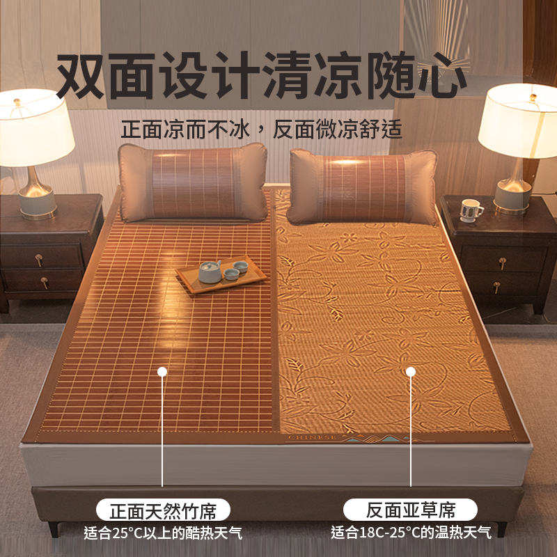 夏天凉席竹席2025新款 冰丝席藤席双面席子可折叠学生宿舍单人草席