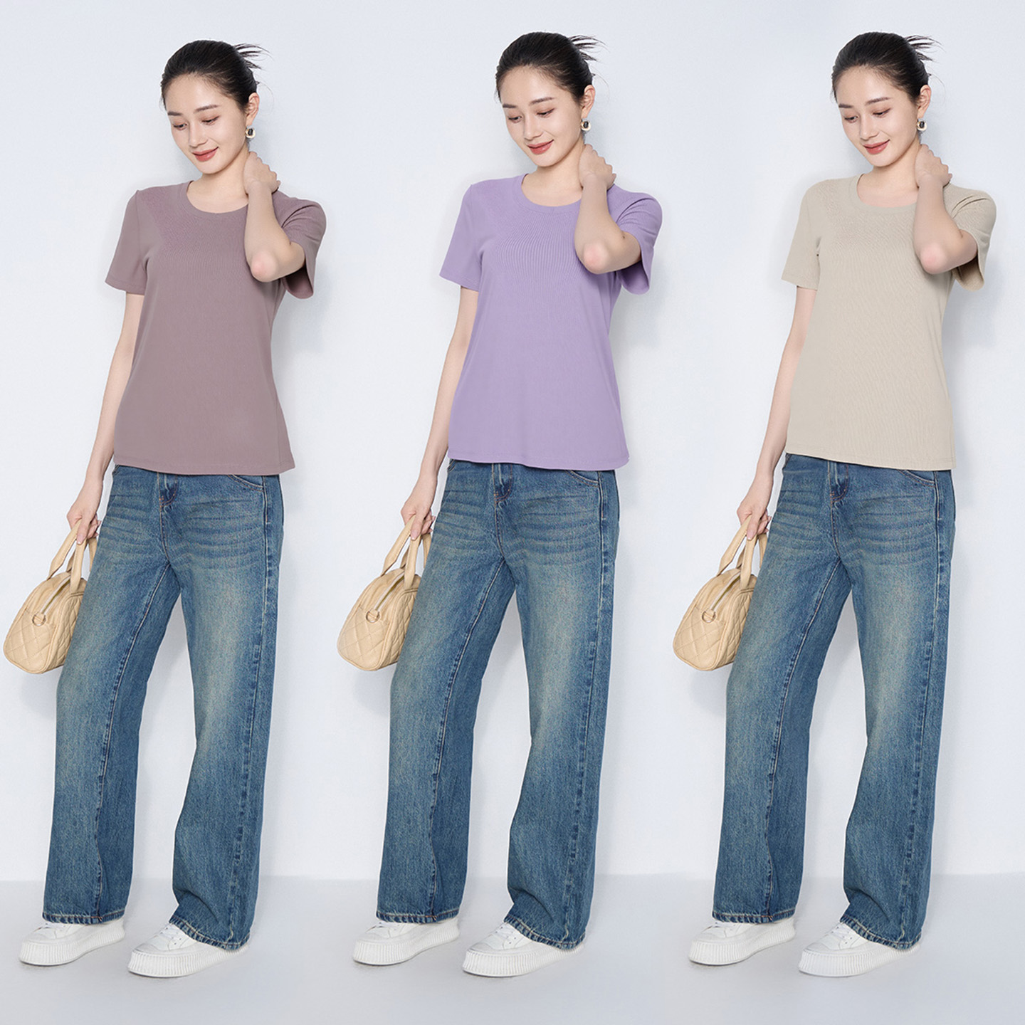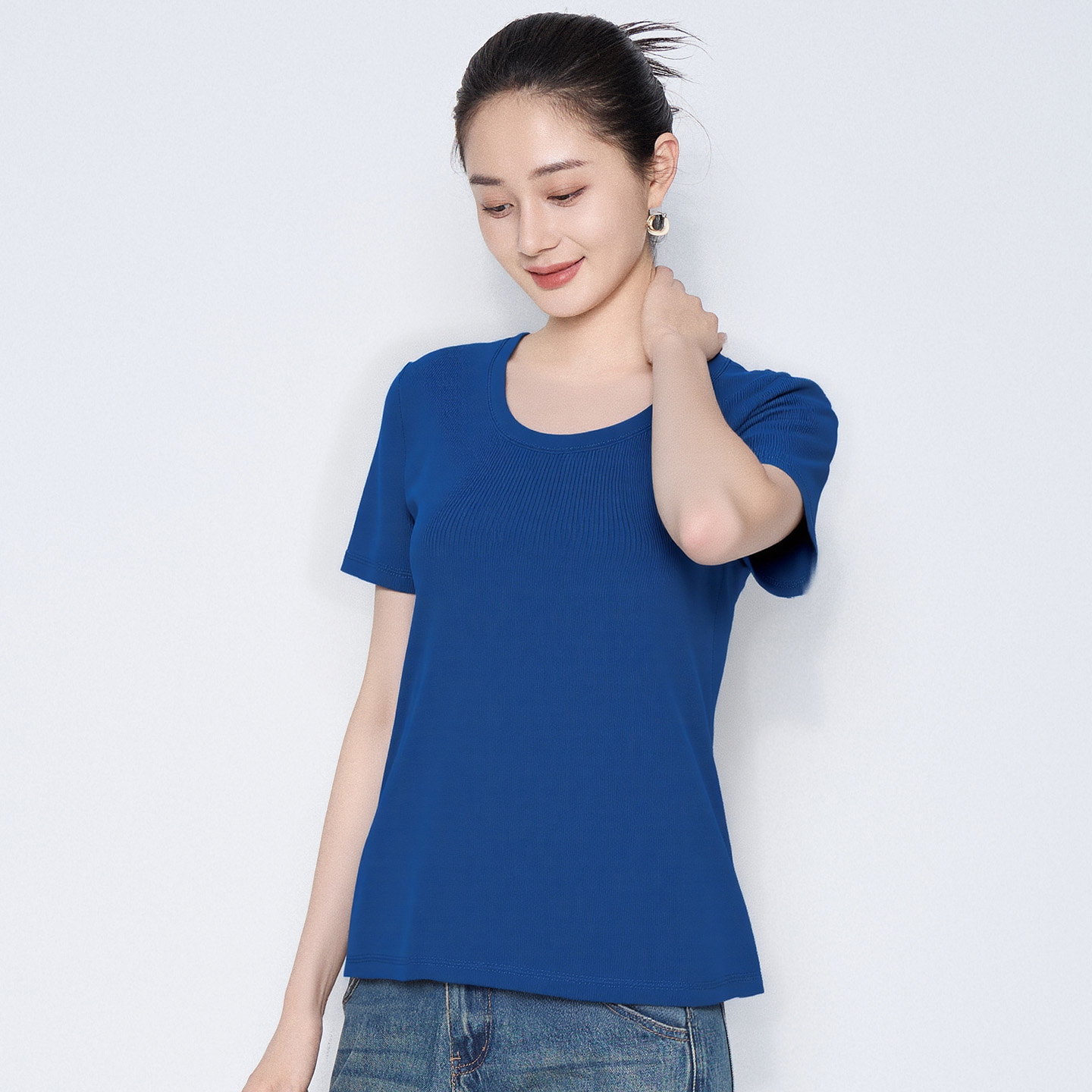 百搭基础款 马天奴2025夏季 上衣时尚 纯色棉质混纺T恤圆领短袖 新款