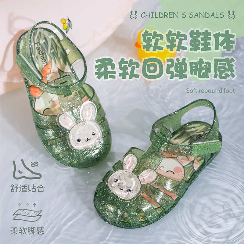 女孩宝宝塑料罗马水晶鞋 儿童兔子包头果冻鞋 2025新款 女款 女童凉鞋