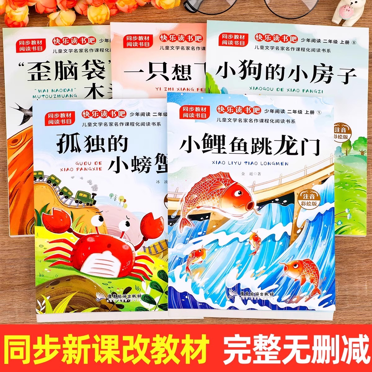 小螃蟹小狗小房子2上老师推荐 猫歪小鲤鱼跳龙门孤独 人教 一只想飞 歪脑袋木头桩二年级上册必读课外书全套5册快乐读书吧注音正版