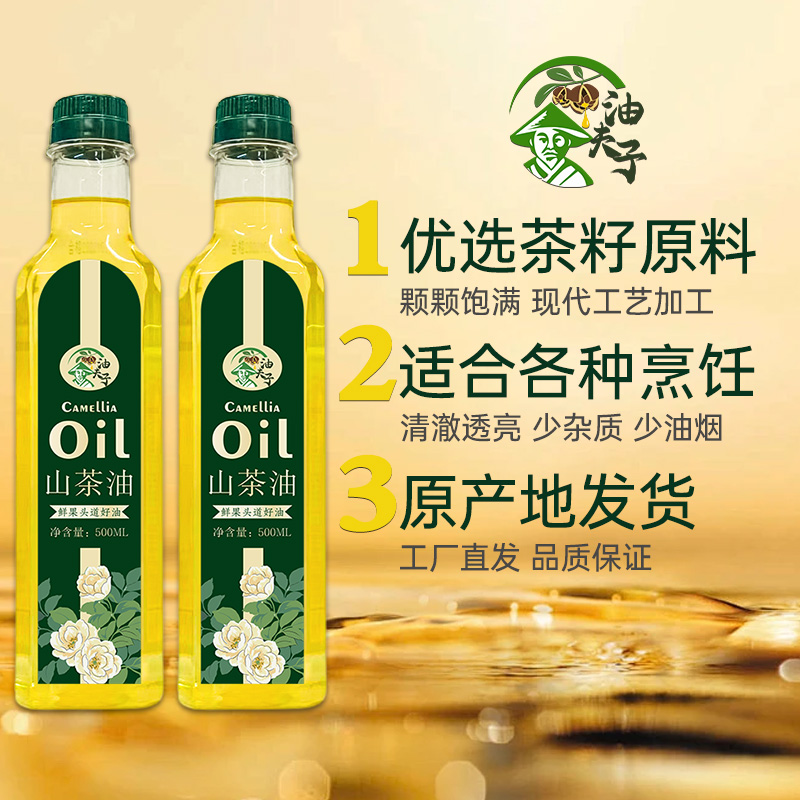 油夫子纯山茶油500ML江西正宗野山茶籽油官方旗舰店一级纯食用