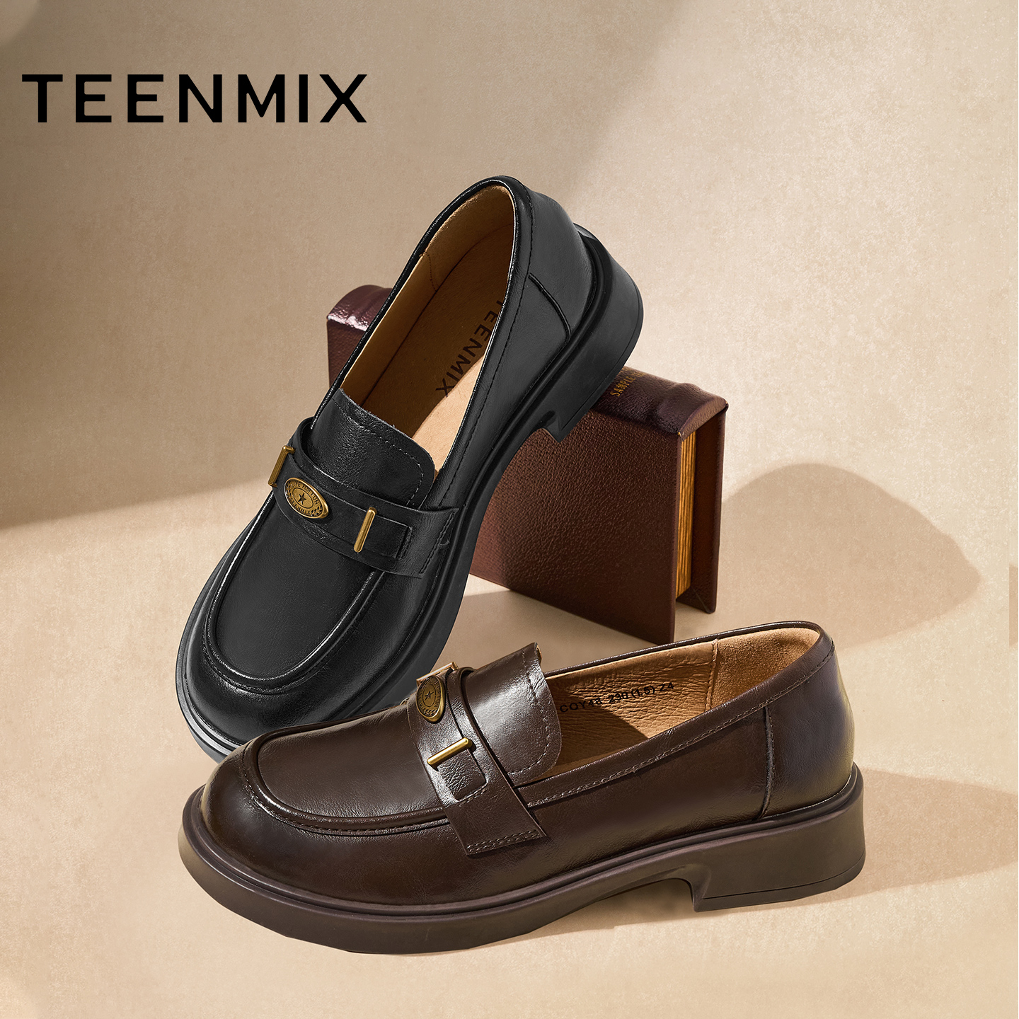 女平底单鞋 小皮鞋 天美意复古休闲英伦乐福鞋 2025新款 双11预售