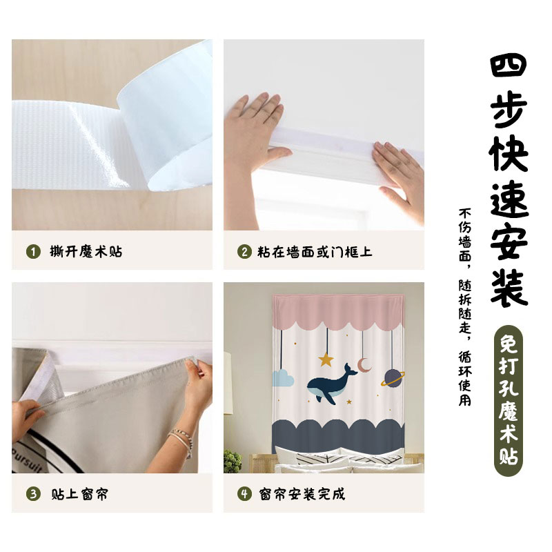 窗帘遮光免打孔安装 隐私帘 厕所卧室简易遮挡帘小窗户魔术贴自粘式
