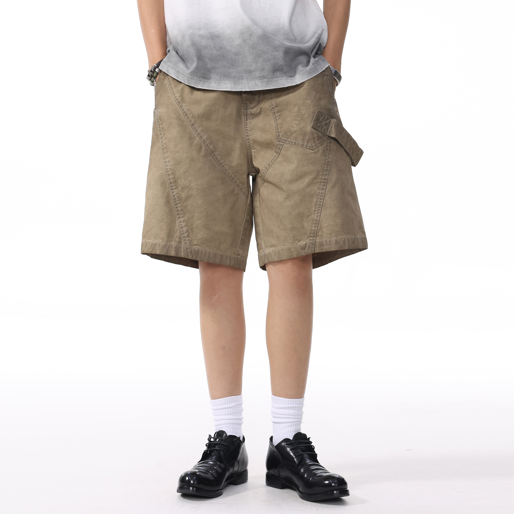 外穿薄款 男夏季 五分裤 拼接美式 子 ALLIN 高街中裤 纯棉水洗潮牌短裤