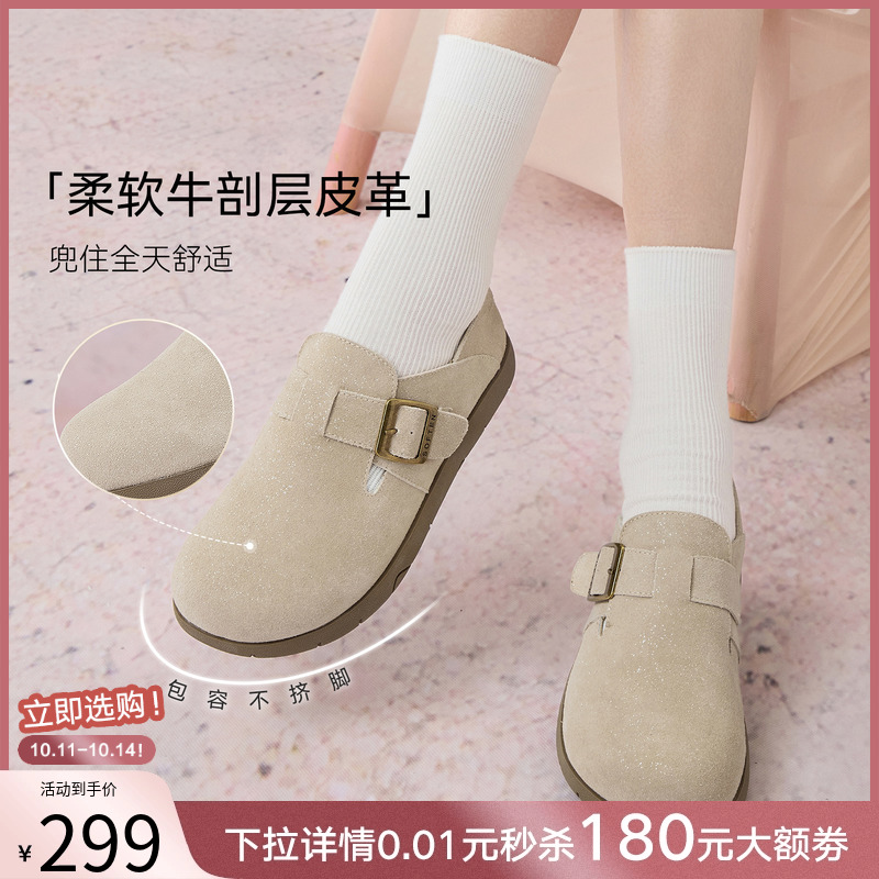 懒人一脚蹬女单鞋 真皮全包勃肯鞋 D3288CM5 商场新款 百思图2025秋季
