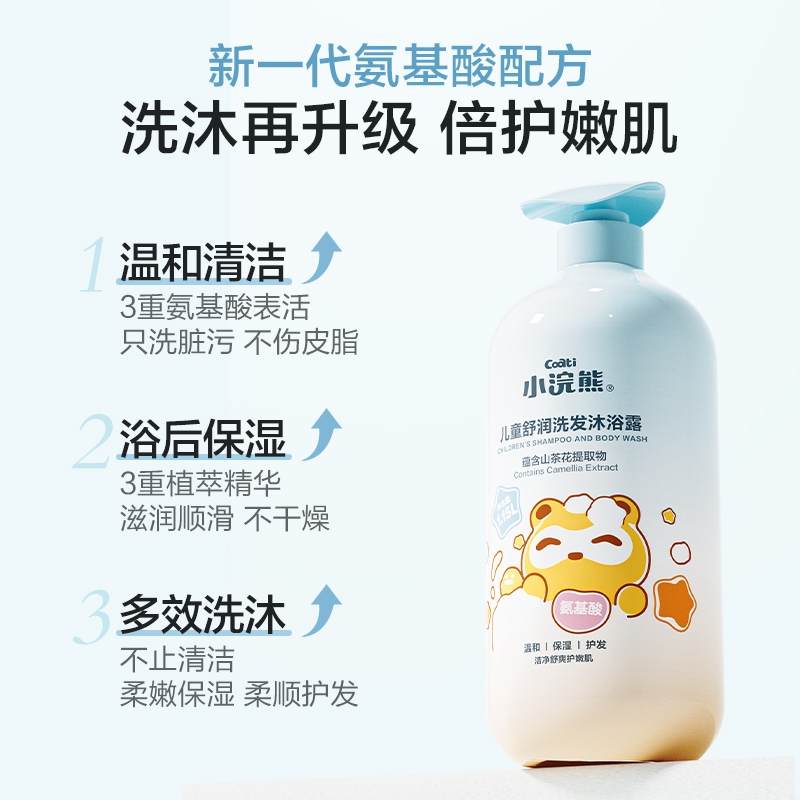 小浣熊儿童沐浴露宝宝沐浴乳液小孩婴儿洗澡沐浴乳洗发沐浴二合一