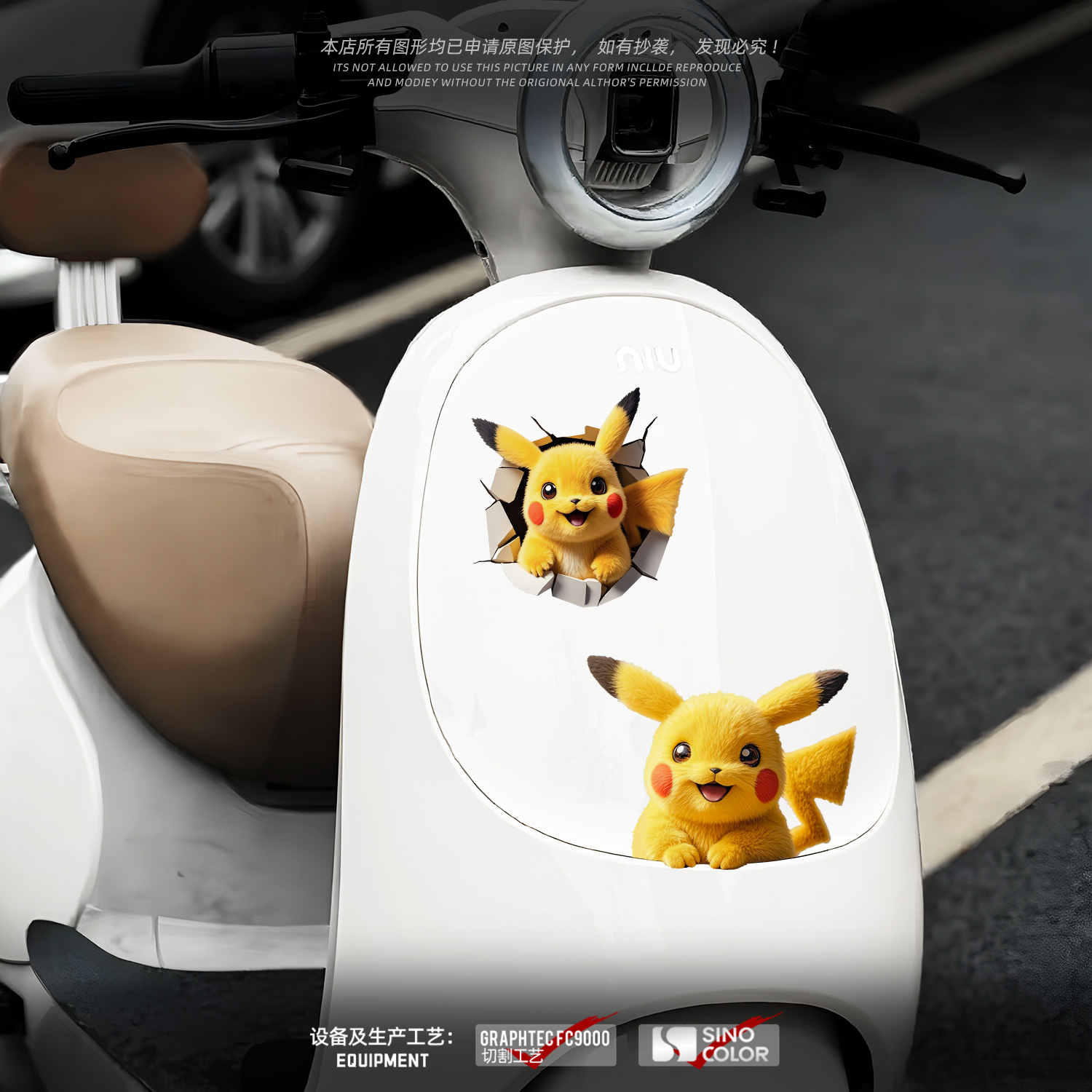 皮卡丘立体电动车贴卡通可爱车身玻璃防水装 饰贴纸划痕遮挡贴画