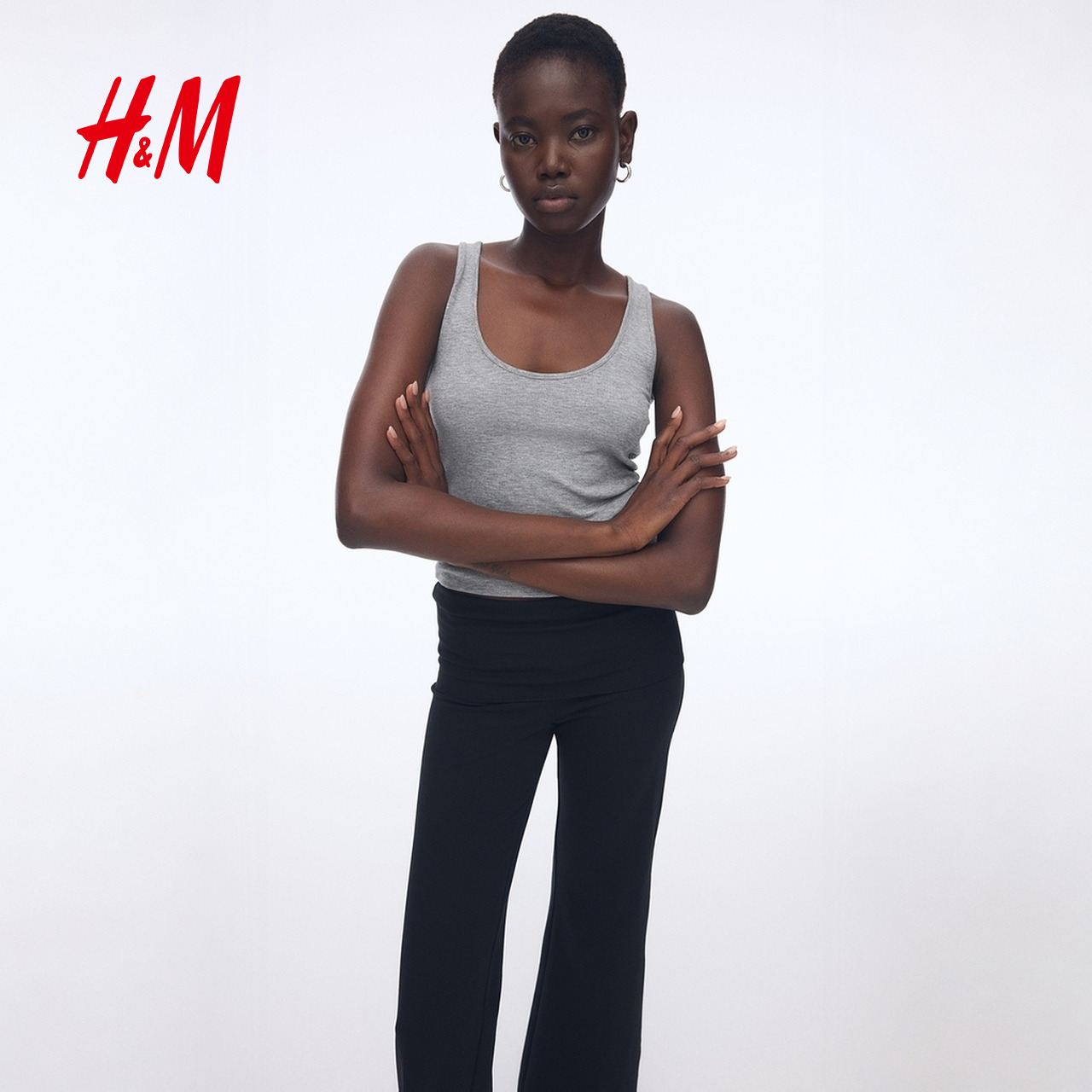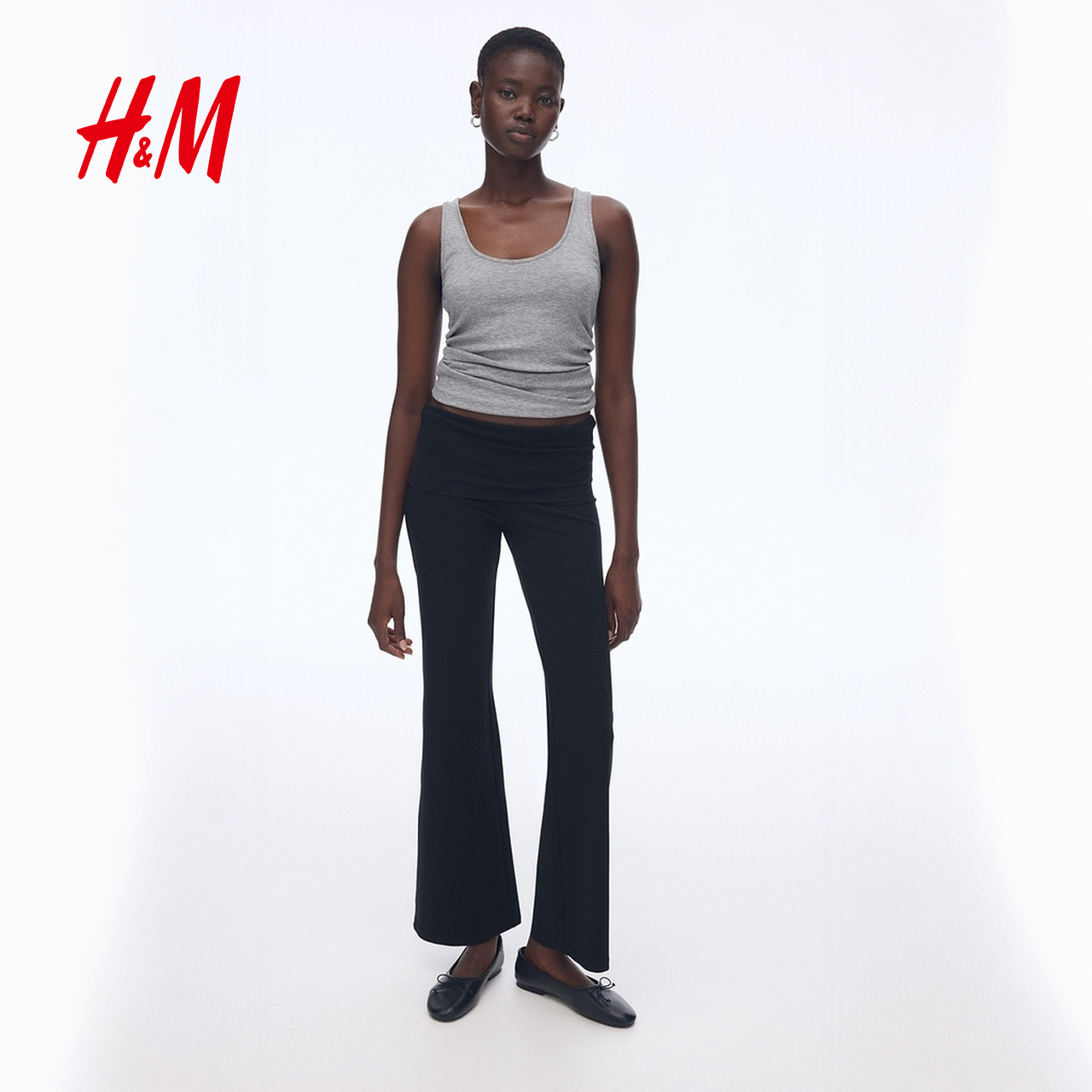 裤 休闲折叠腰棉质松紧腰长裤 子2025秋季 时尚 1299682 新款 HM女装