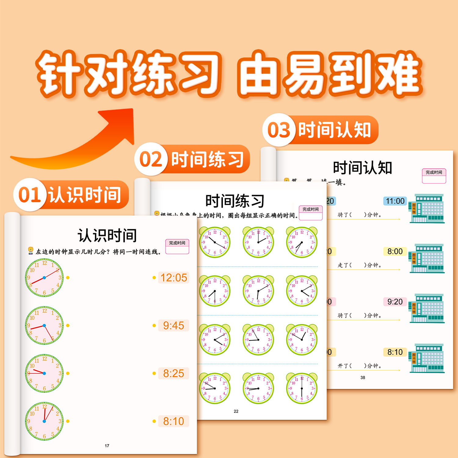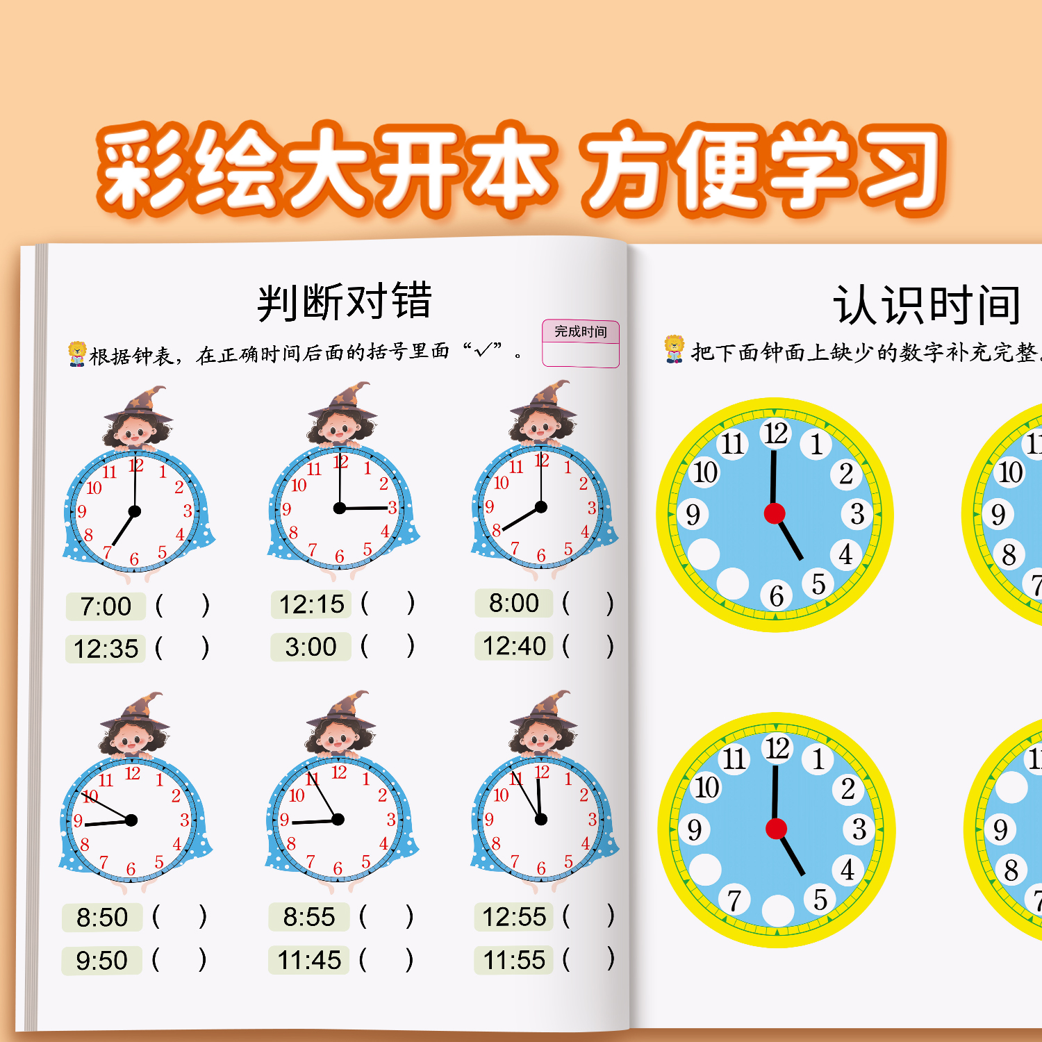 认识钟表和时间练习册幼儿园中大班练习册幼小衔接数学每日一练启蒙教材早教书籍时分秒教具幼儿园逻辑思维训练书幼儿学习时间管理