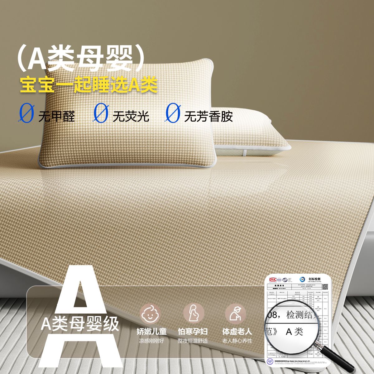 夏季 a类母婴级可机洗单人席子空调床笠三件套 凉席冰丝席2025新款