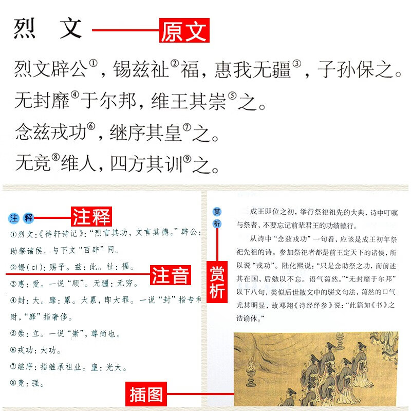 诗经风雅颂注释难字注音插图版 3册 全集文白对照 诗经原著完整版 图书籍 译注赏析中国古诗词歌赋楚辞典国学经典 精装