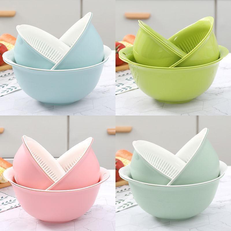 新款 双层洗菜篮加厚厨房淘米器沥水篮子客厅家用水果盘漏盆塑料盆