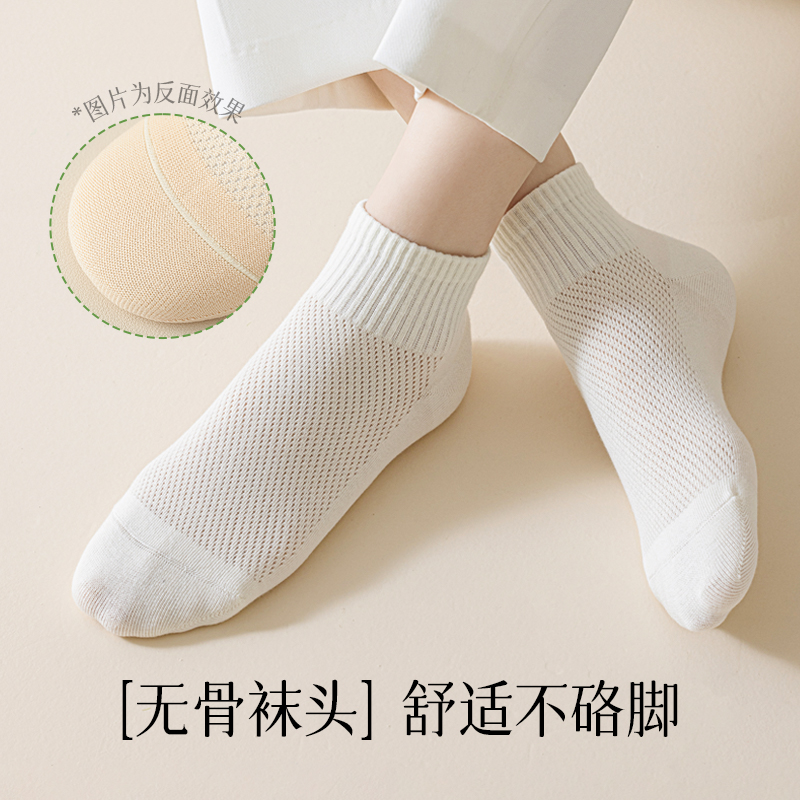 全棉短袜子女春秋季 中短筒袜无骨 纯棉吸汗防臭抗菌透气运动夏薄款