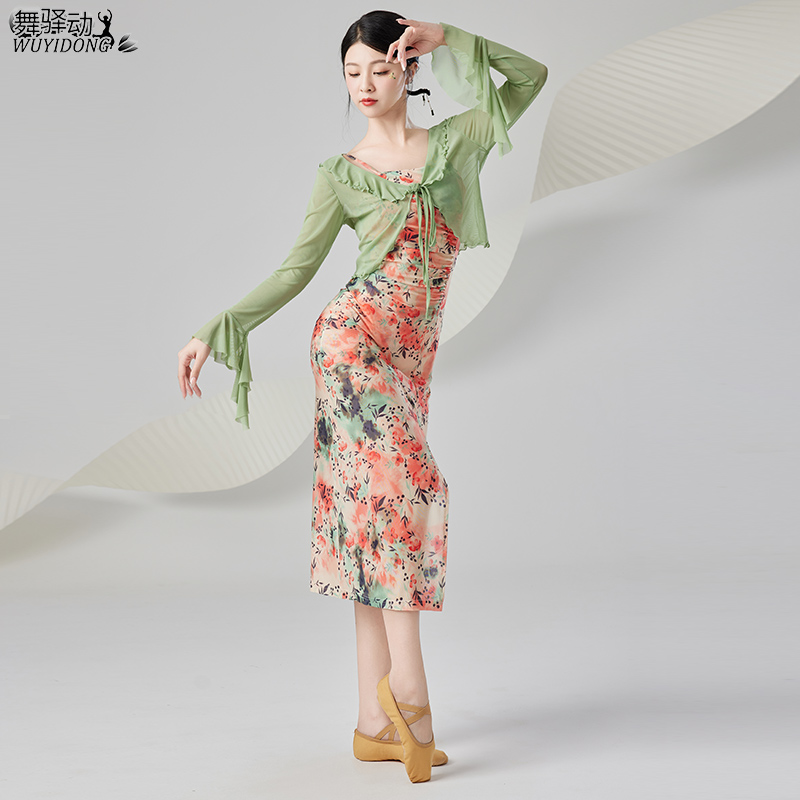 飘逸女现代舞吊带连衣裙表演套装 舞驿动新款 中国舞蹈服古典舞服装