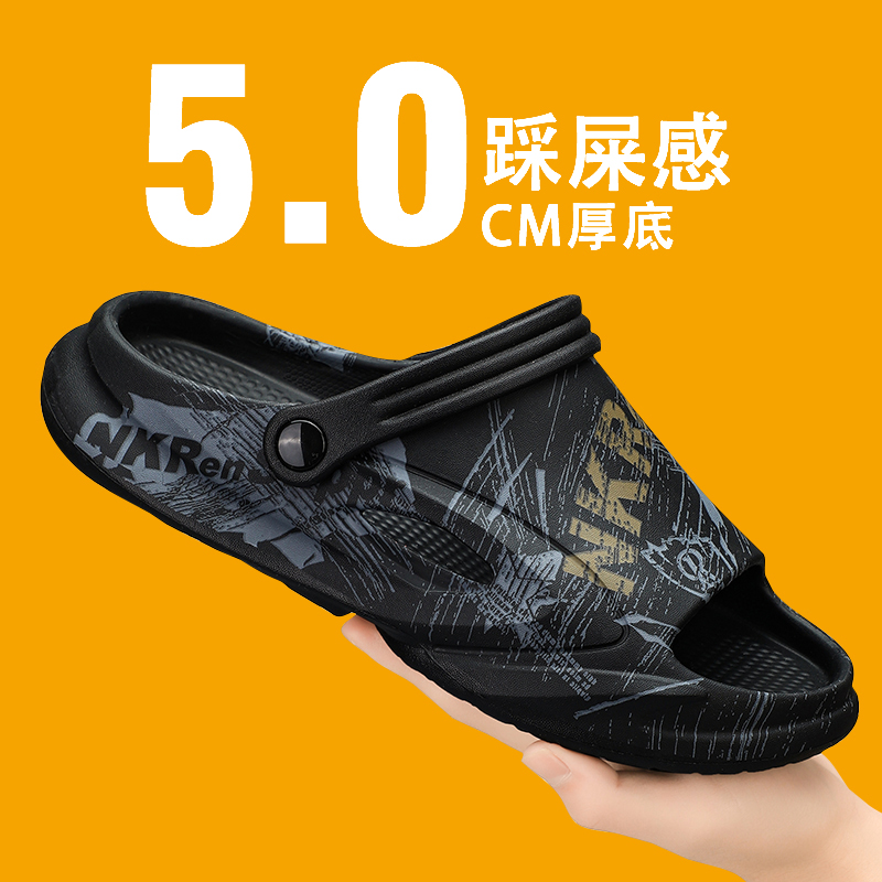 户外运动沙滩凉鞋 潮牌外穿防滑开车两用踩屎感大码 男夏季 一字拖鞋
