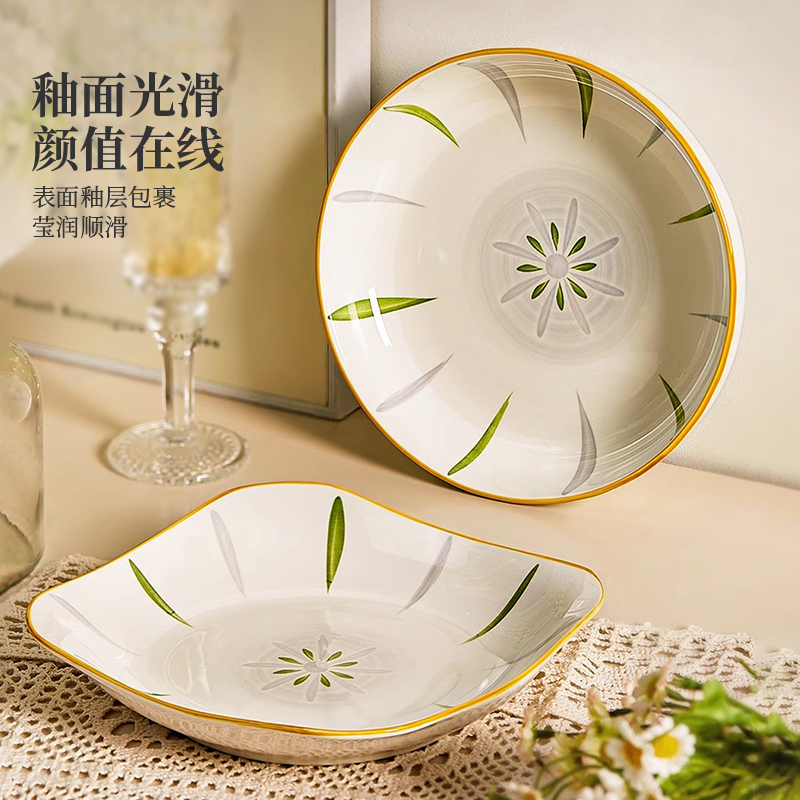 釉下彩家用陶瓷菜盘餐盘深盘高级感2025新款 碗盘餐具清新盘子碟子