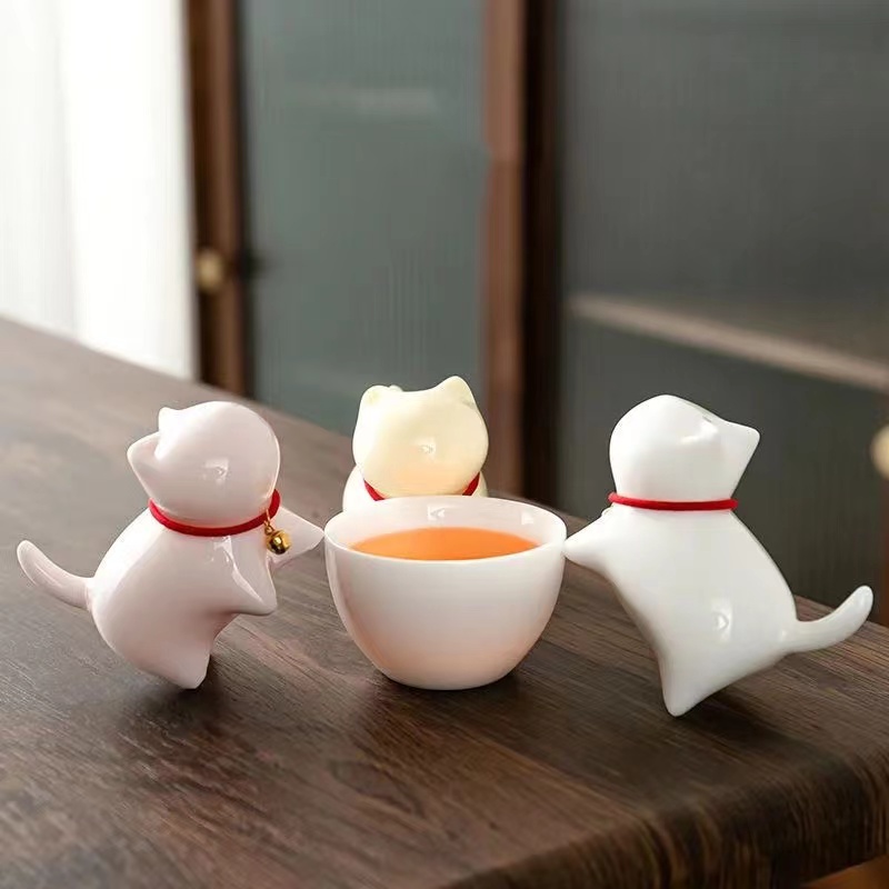 白瓷茶宠摆件可爱萌小猫茶玩小摆设陶瓷纸镇笔架笔搁送礼猫咪茶玩