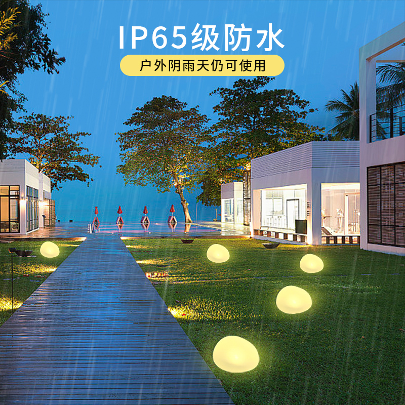 太阳能鹅卵石灯户外防水家用草坪花园庭院别墅景观装 饰发光石头灯