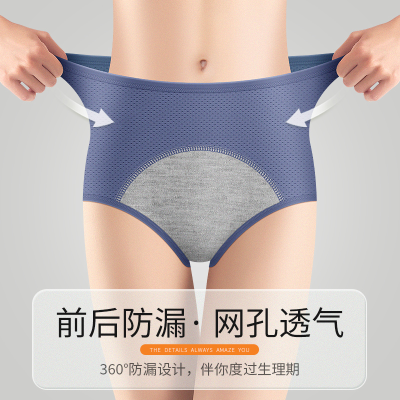 薄款 中腰冰丝生理内裤 夏季 例假卫生裤 透气 女士月经期防漏大姨妈裤