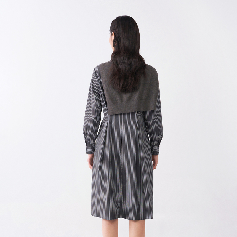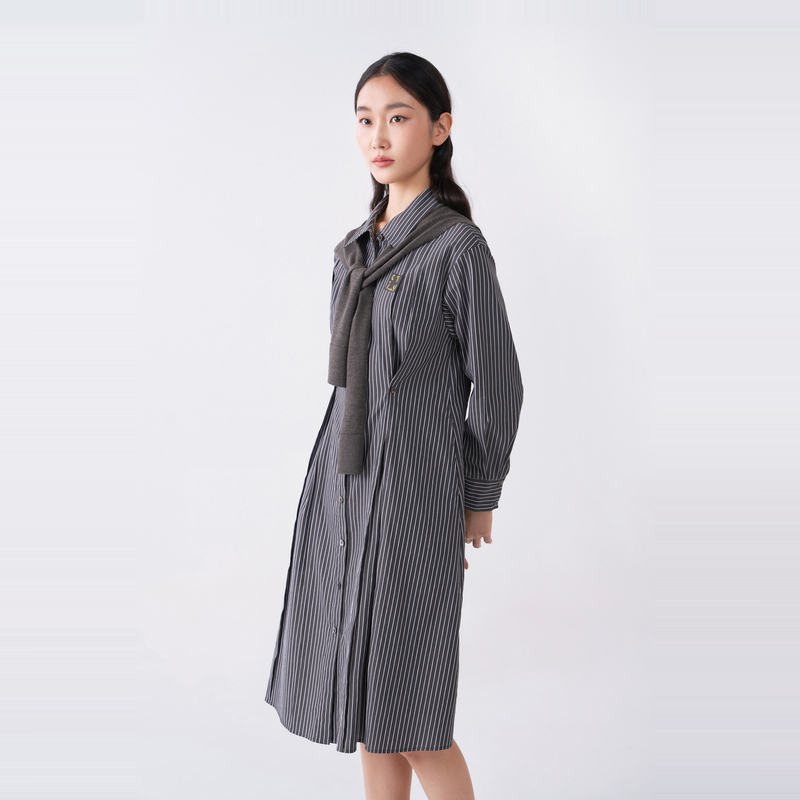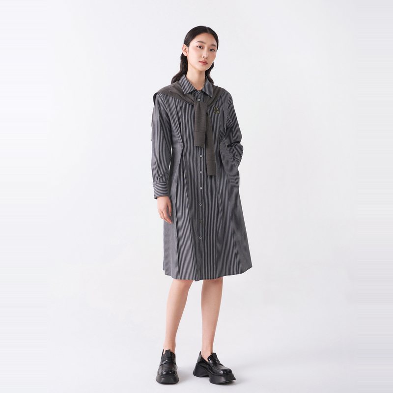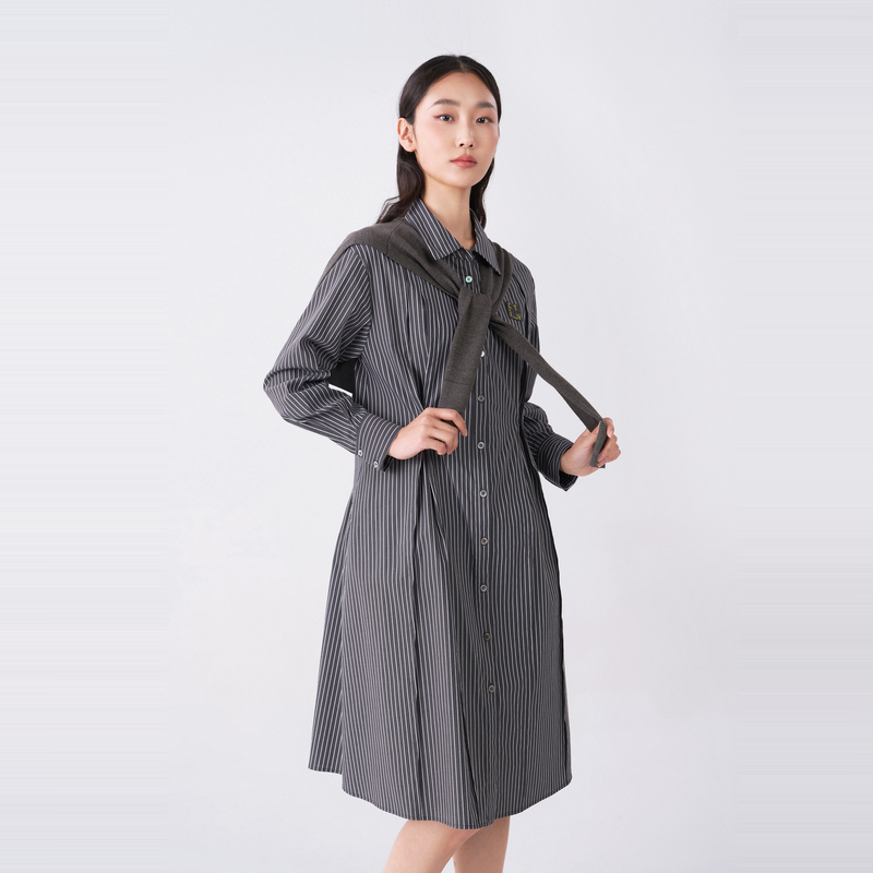 衬衫 易菲宽松收腰中长款 Yifini 裙女条纹气质连衣裙秋 专柜同款