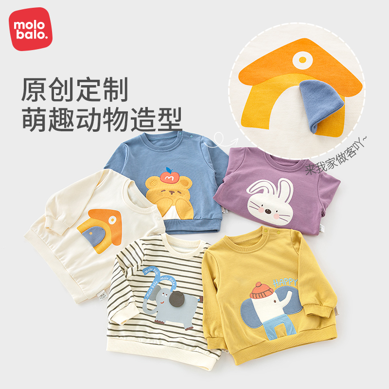 麦拉贝拉婴儿卫衣内搭打底衫 可爱男女宝宝卡通t恤上衣a类 棉春秋季