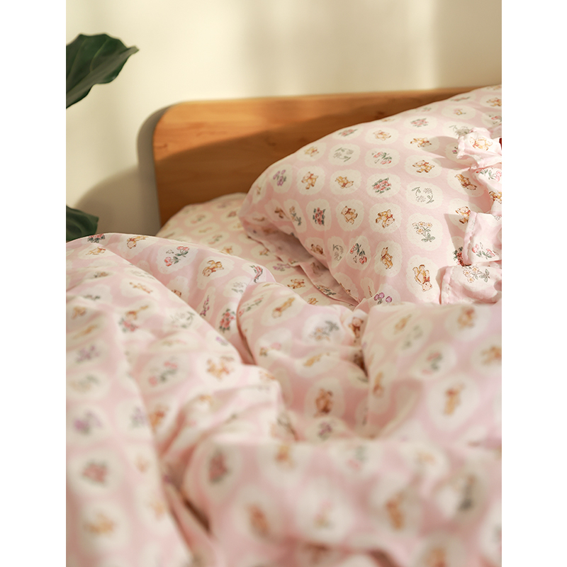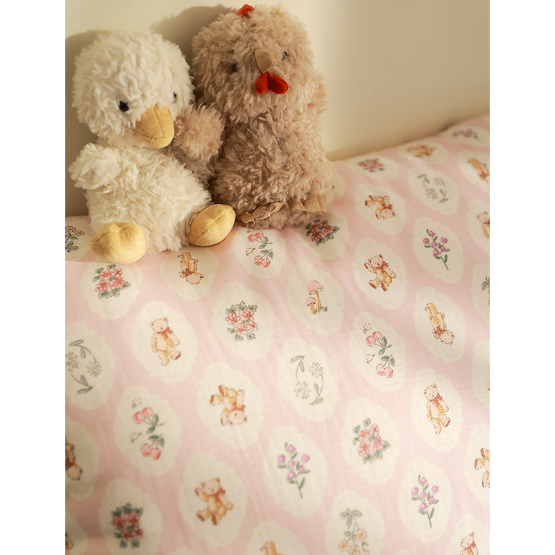 MLG 花熊日记卡通趣味纯棉双层纱布花边枕可爱床单床笠枕套被套