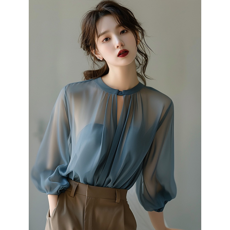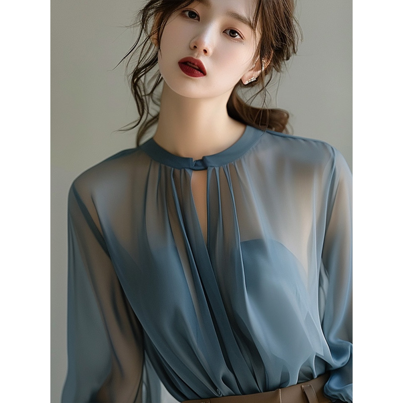 女娃娃领秋冬长袖 减龄雪纺衬衫 保暖衬衣洋气上衣女 不加绒 加绒