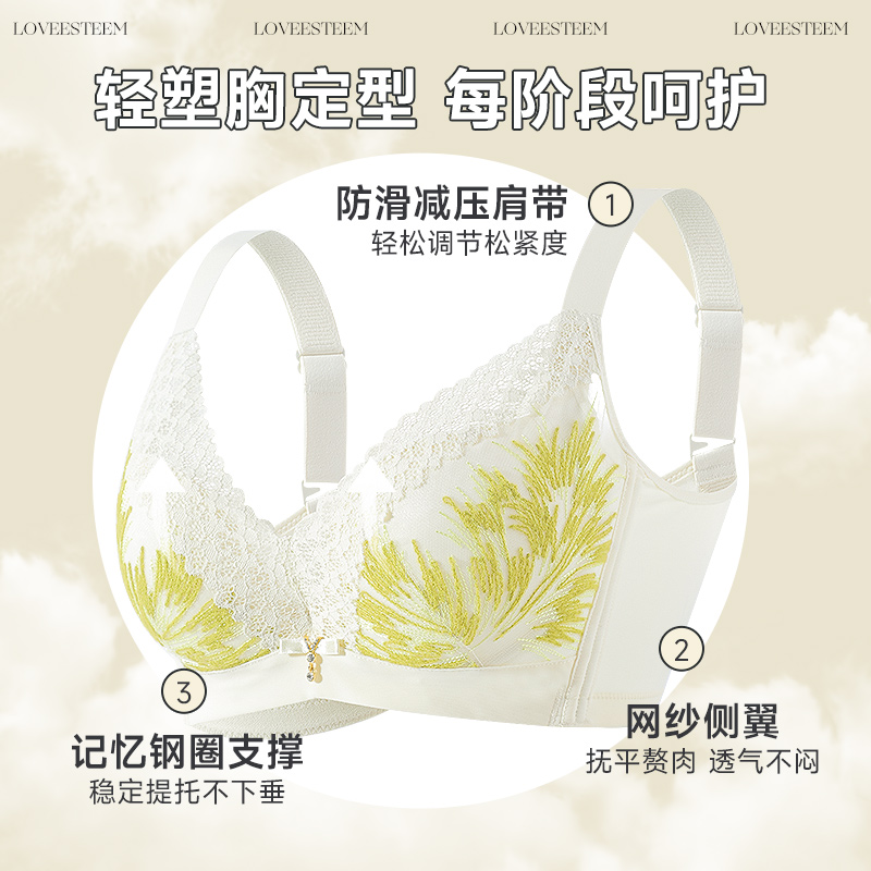 记忆软钢圈聚拢内衣女大胸小胸防下垂收副乳蕾丝性感调整型文胸罩