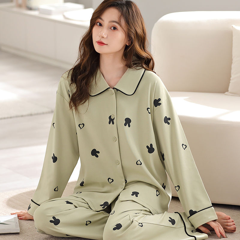 春秋季 少女可外穿家居服套装 长袖 大码 开衫 可人儿针织棉睡衣女新款