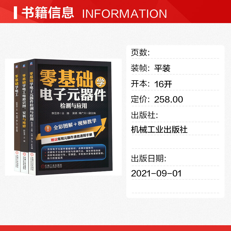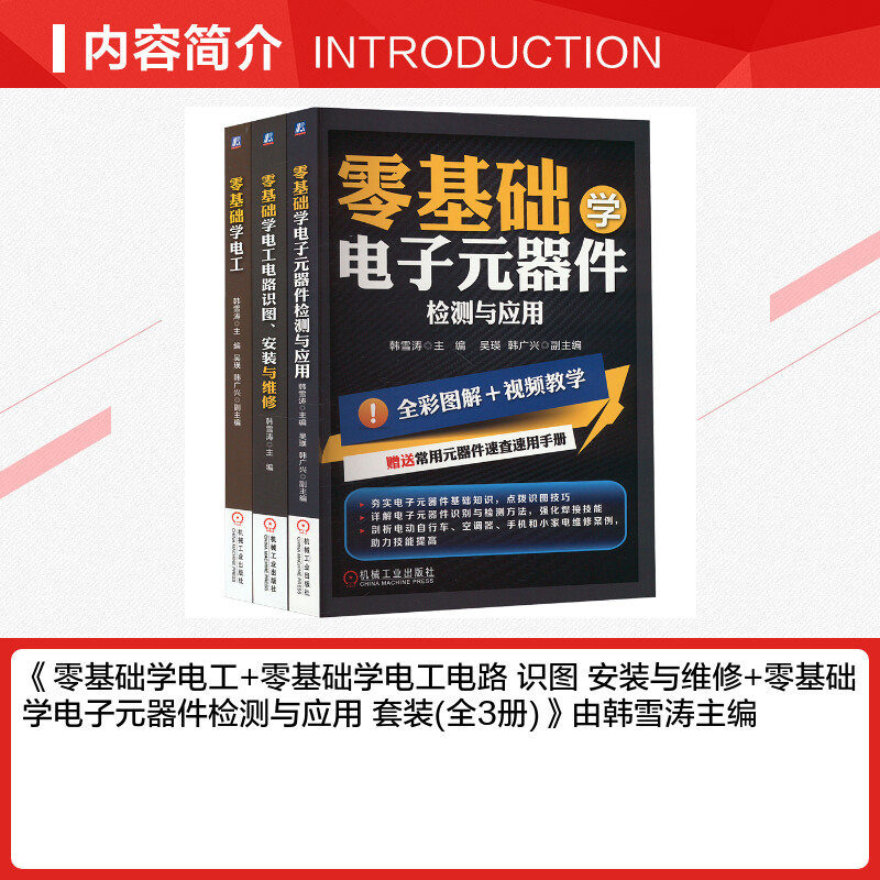 器件检测与应用 电子电路专业科技 识图 编 韩雪涛 套装 零基础学电子元 与维修 安装 零基础学电工电路 零基础学电工