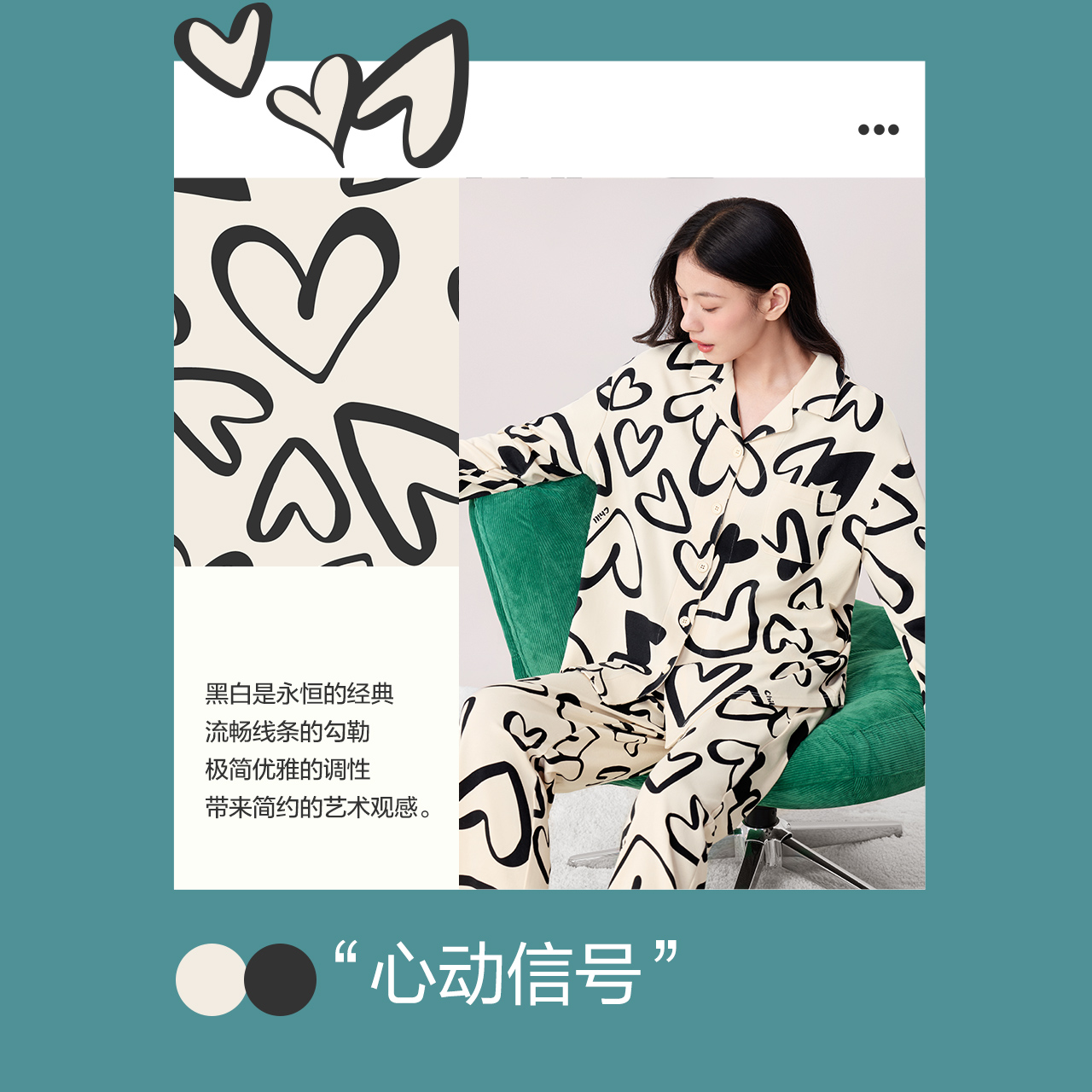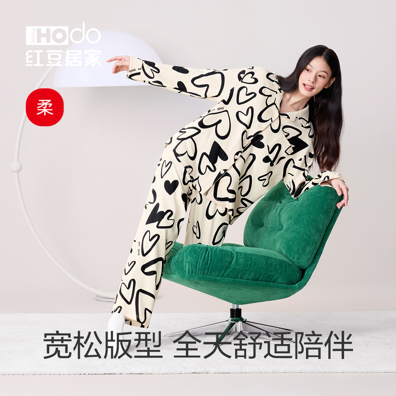 柔软家居服套装 红豆 宽松高级感开衫 睡衣女春秋纯棉长袖 柔柔棉