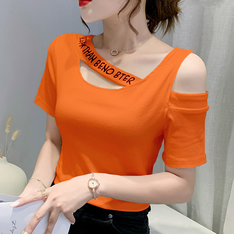 小衫 不规则镂空设计感体恤修身 2025年春夏新款 性感露肩T恤女短袖
