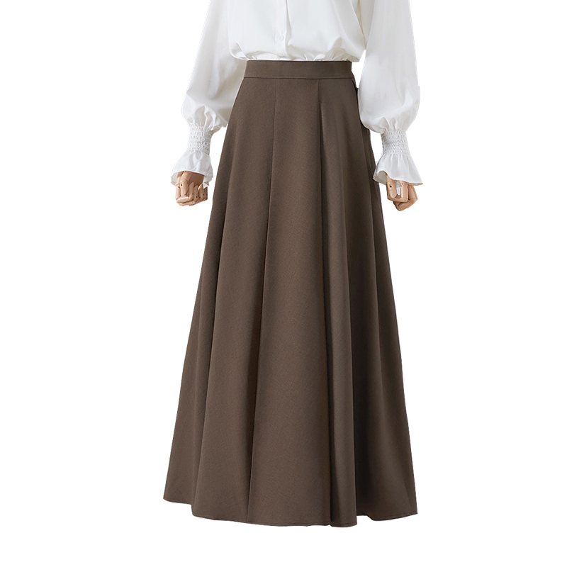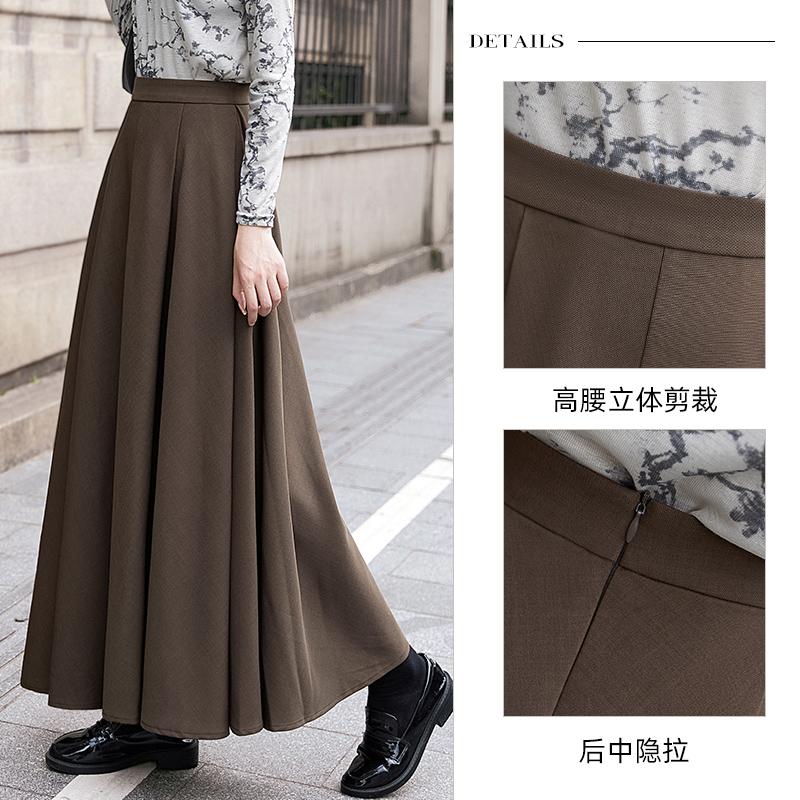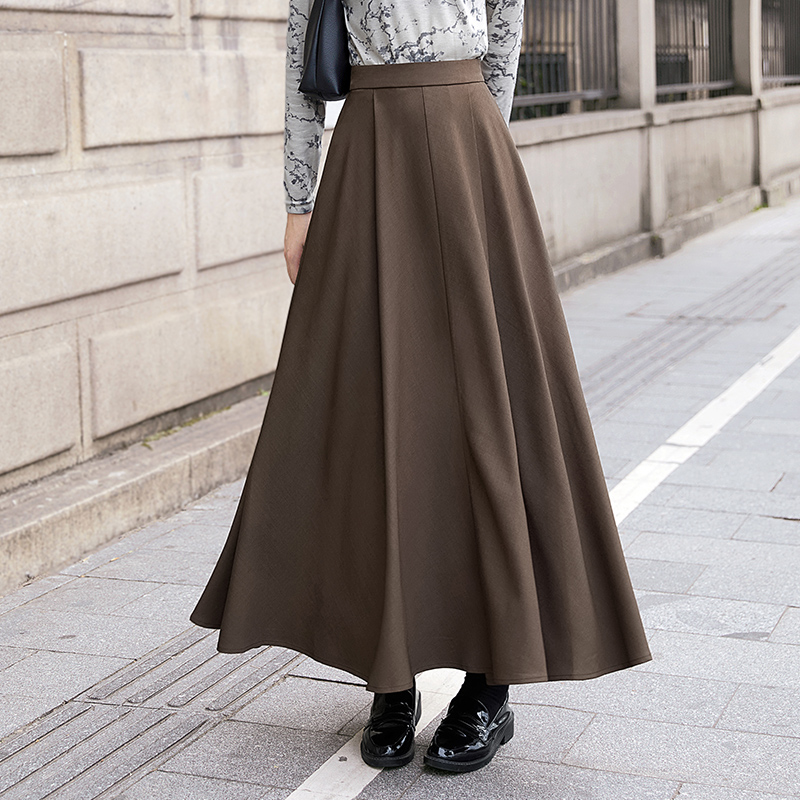 复古简约高腰显瘦A字大摆长裙 女装 她池通勤风半身裙2024秋装 新款