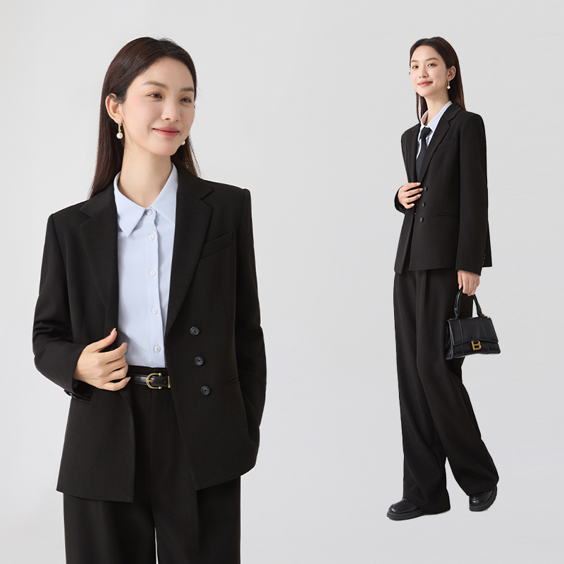 高腰直筒阔腿裤 子女2025春秋垂感拖地休闲长裤 裤 天丝羊毛黑色西装