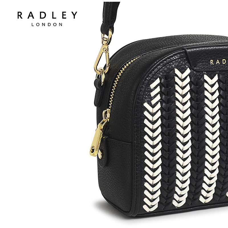 Radley英国奢品经典 轻便斜挎包 黑白条纹牛皮双层斜挎包小巧能装