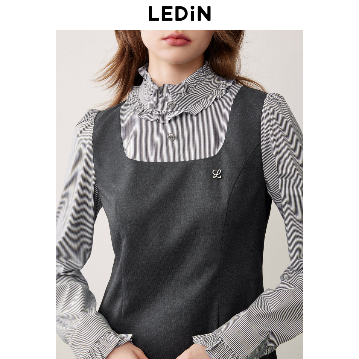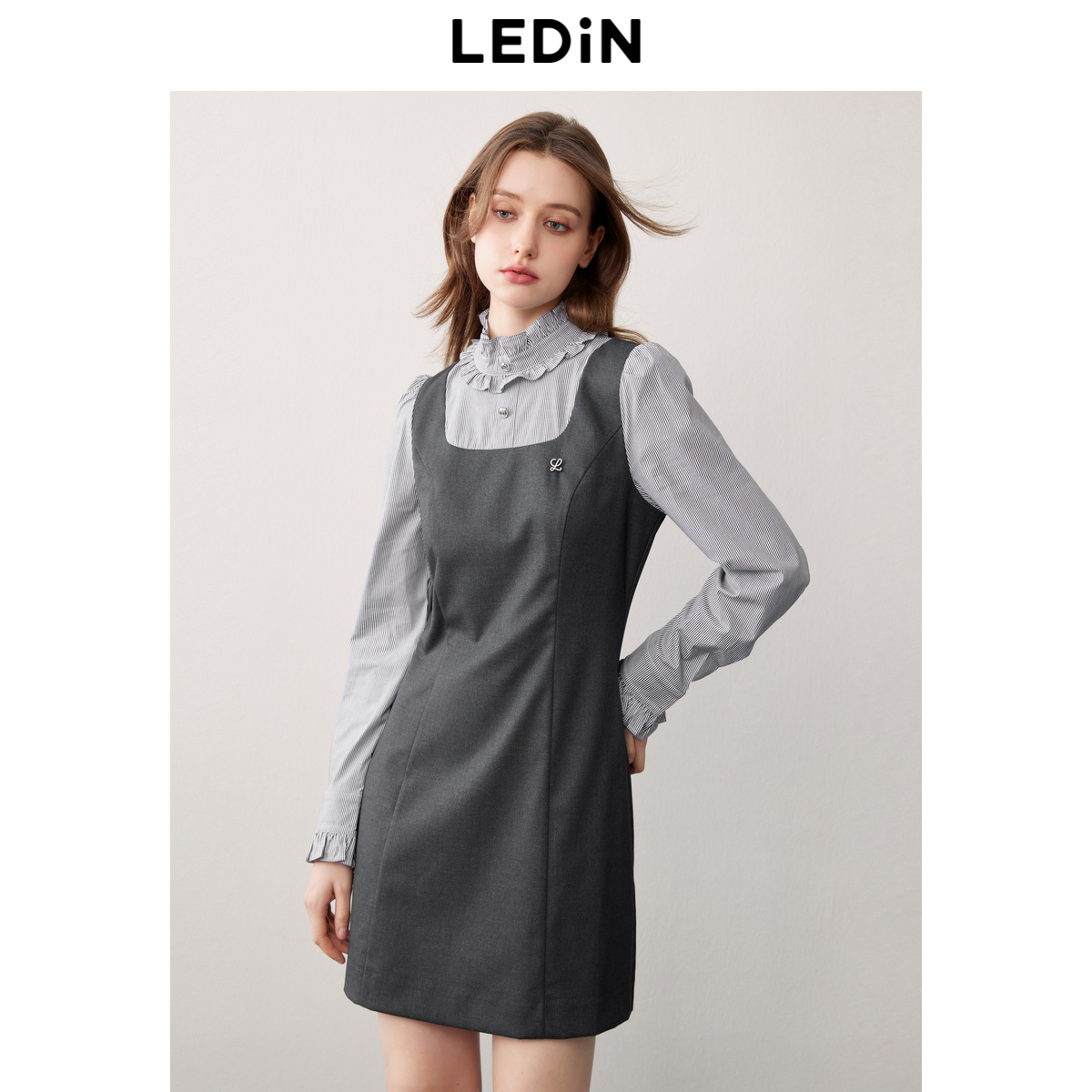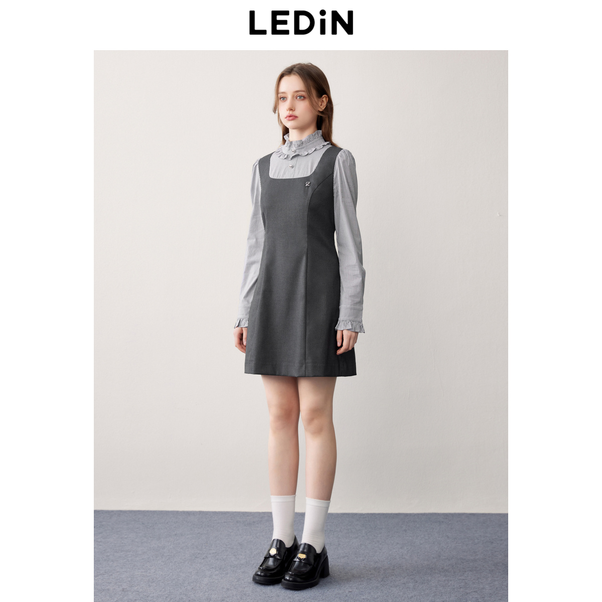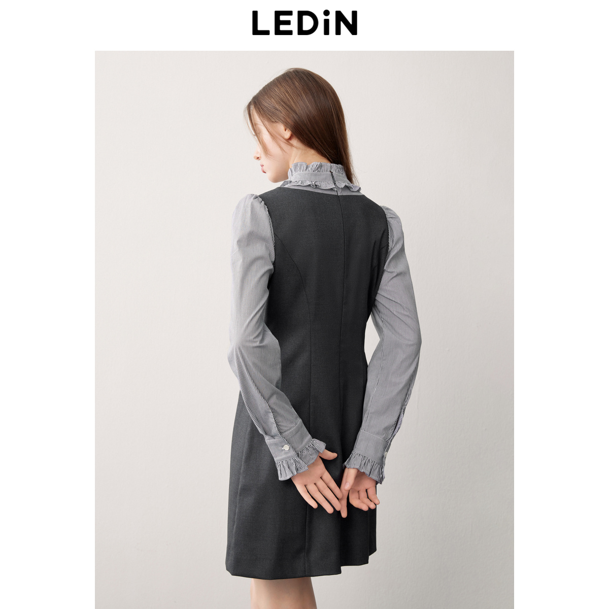 格雷系学院风花边半高领连衣裙 新款 乐町韩系假两件长袖 连衣裙秋季