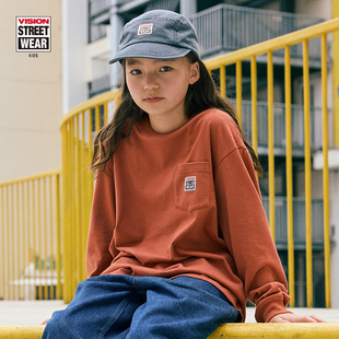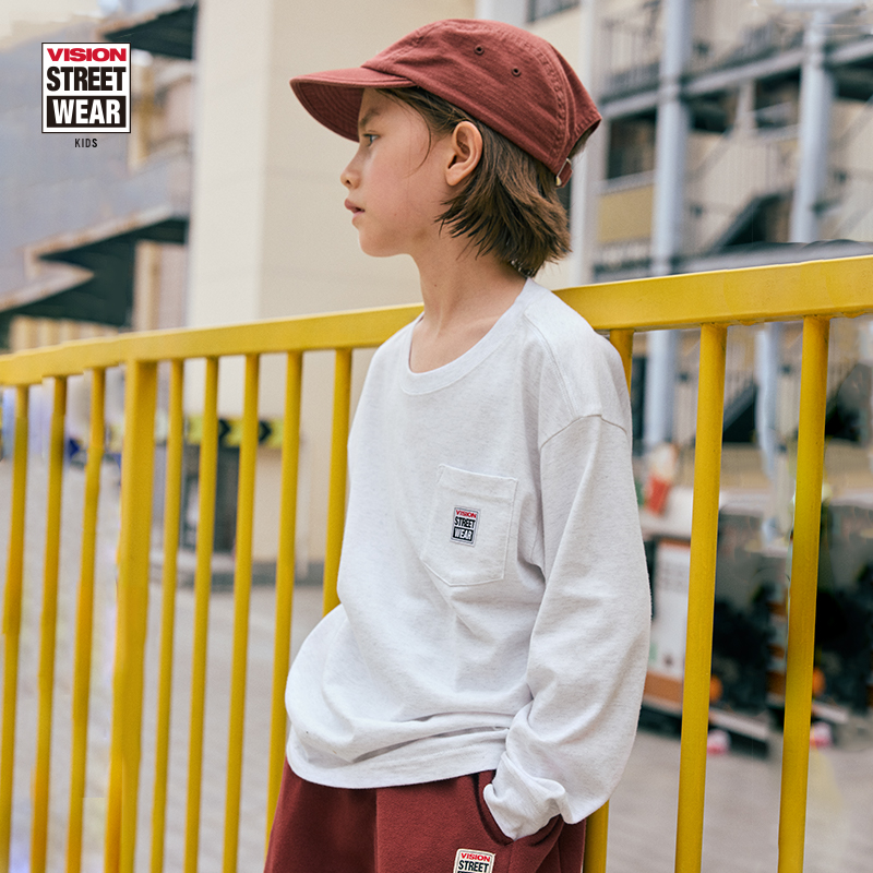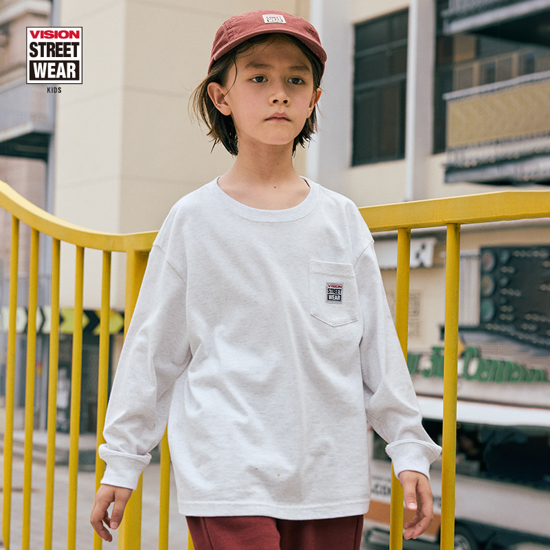复古经典 BOX 新款 KIDS 春季 美式 T恤男女童装 VISION LOGO口袋长袖