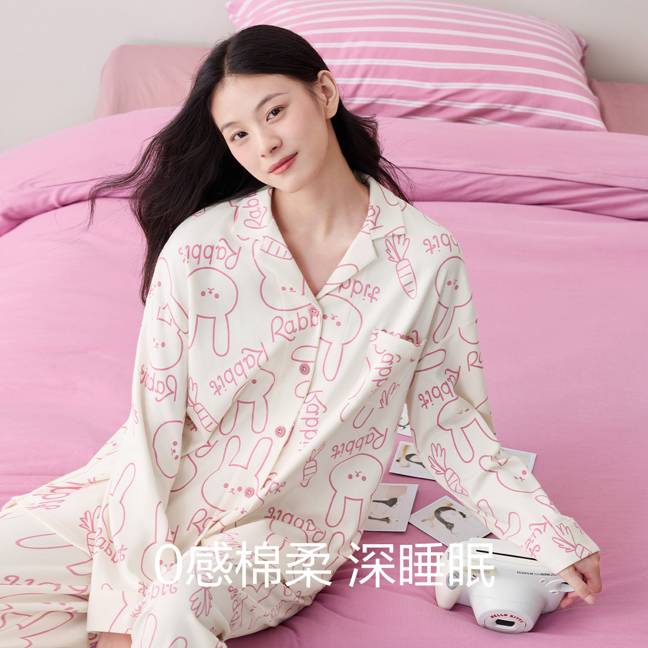 春秋新款 红豆纯棉睡衣女长袖 A类抑菌可外穿柔软宽松家居服套装