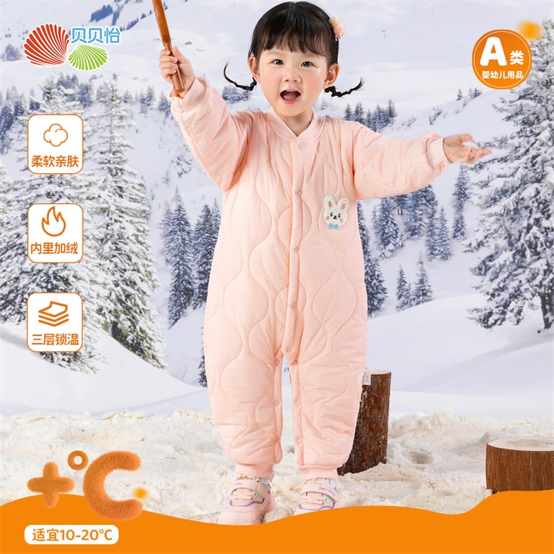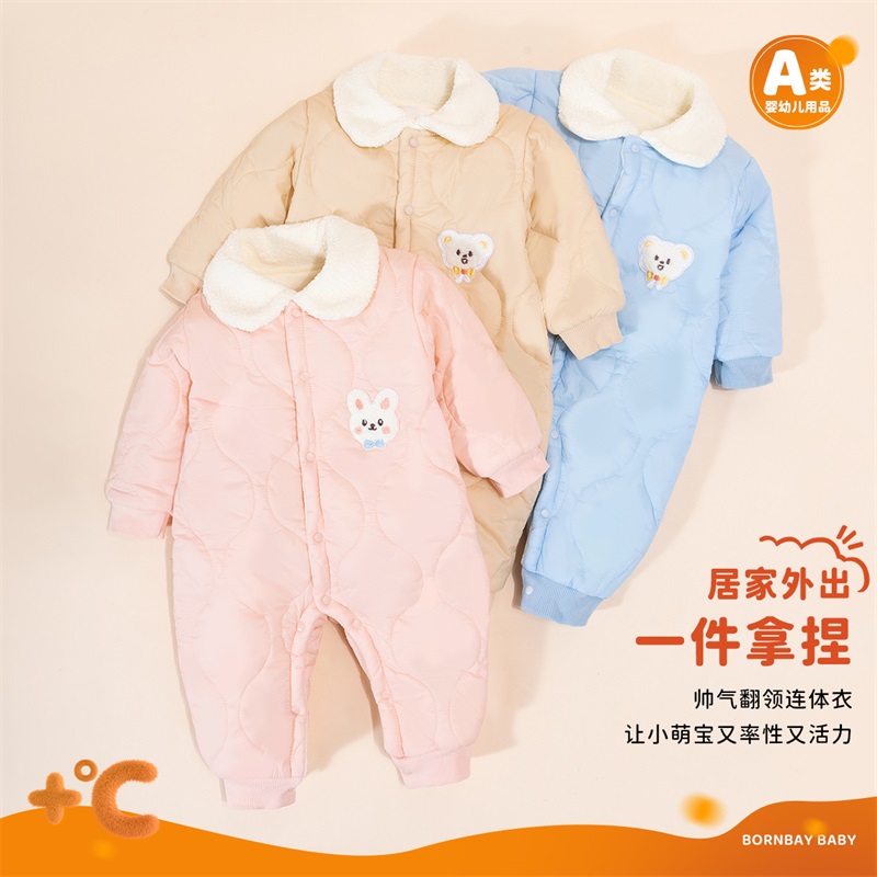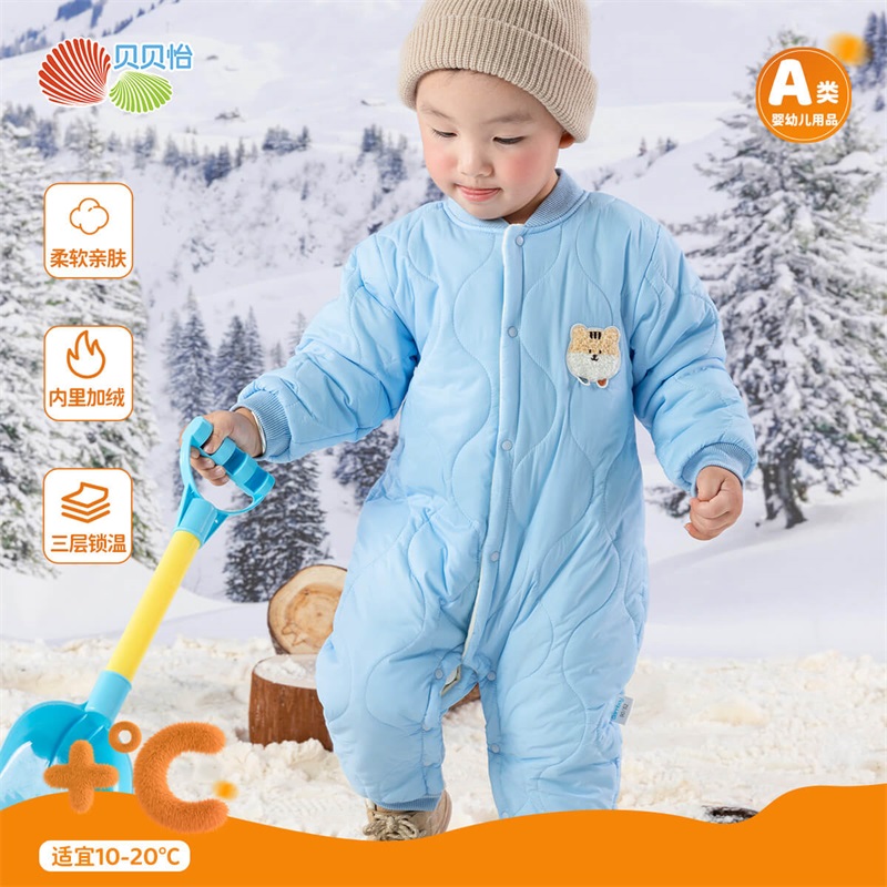 贝贝怡童装 加绒加厚保暖新生儿夹棉宝宝哈衣 婴儿连体衣秋冬新款