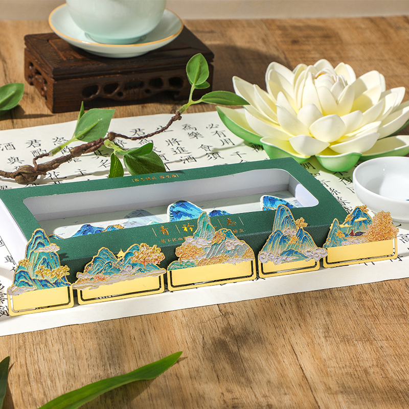 古典山川书签礼盒中国风金属黄铜书扣高档精致书签创意高颜值礼品故宫文创纪念品古风送老师教师节精美礼物