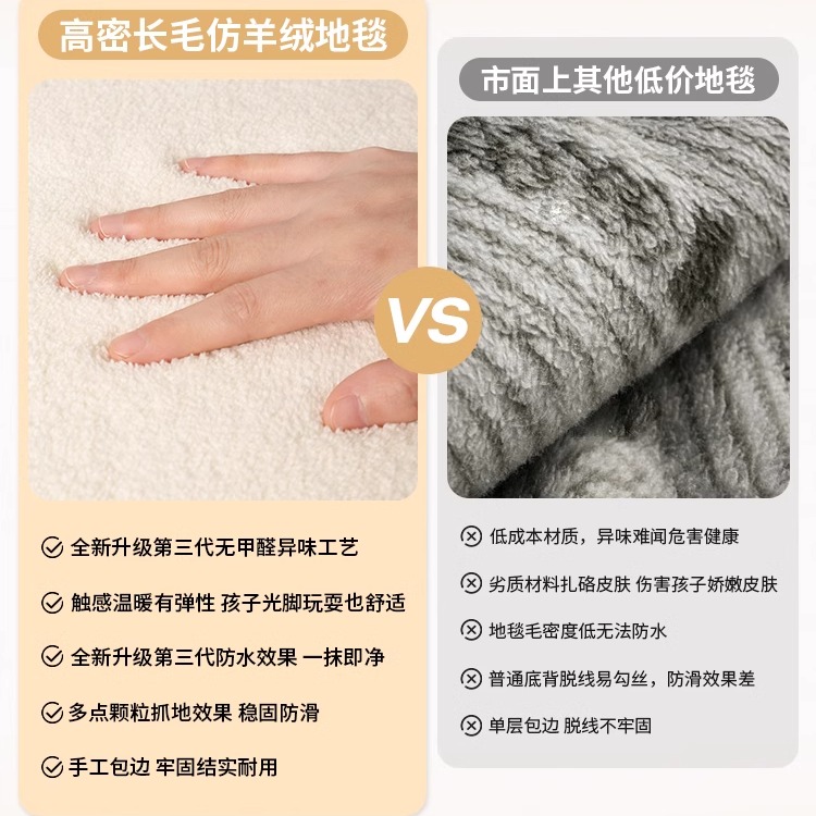地毯卧室客厅2025新款 可擦免洗仿兔毛绒床边毛毯地垫飘窗垫厚白色