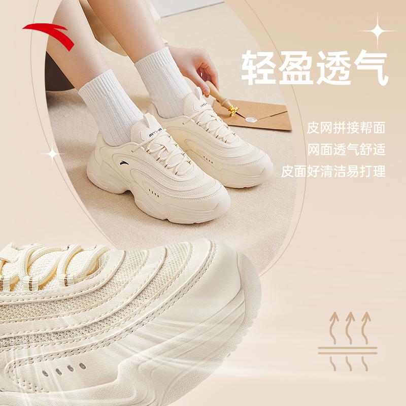 轻质女跑鞋 安踏星云 网面皮面运动鞋 女秋季 减震软底有氧跑步鞋