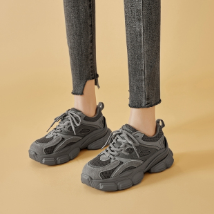 轻便厚底休闲百搭透气运动鞋 新款 女2025年春秋季 复古显脚小老爹鞋