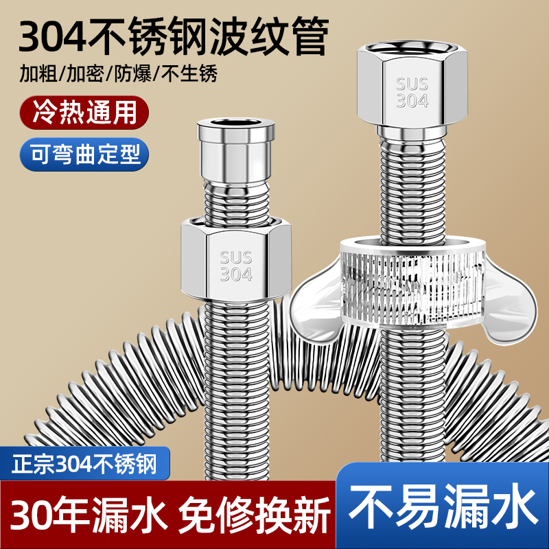 适用于美 海尔热水器波纹管304不锈钢燃气冷热水专用4分金属进出