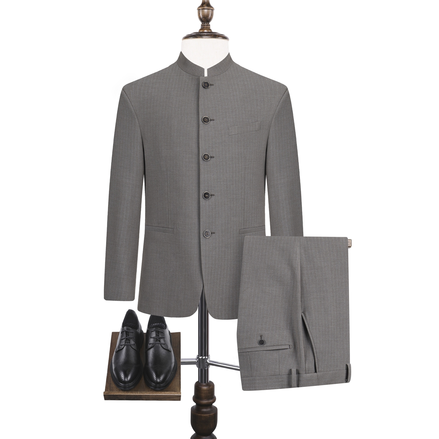 套装 男士 柒牌西装 秋冬国风人字纹提花五粒单排扣 中华立领