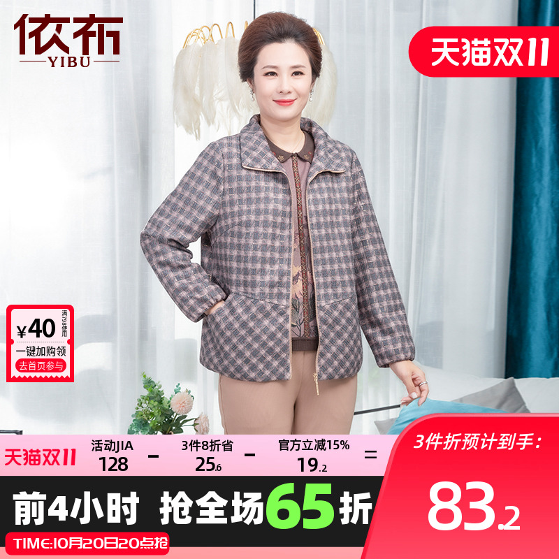 妈妈装 翻领上衣宽松大码 百搭格子外套时尚 依佈中老年人2025秋装