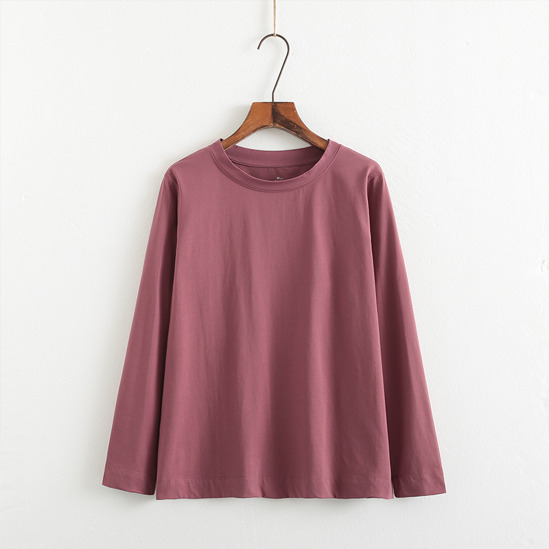内搭圆领薄白色上衣 打底衫 长袖 T恤女100%纯棉液氨丝光棉全棉修身