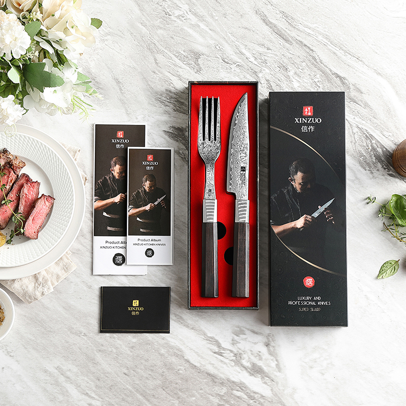 信作大马士革钢刀叉2件套西餐刀叉套装 切牛扒专用刀叉西餐餐具