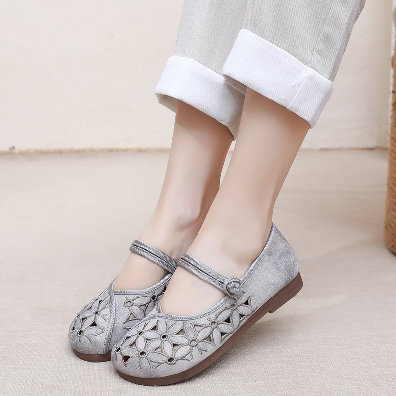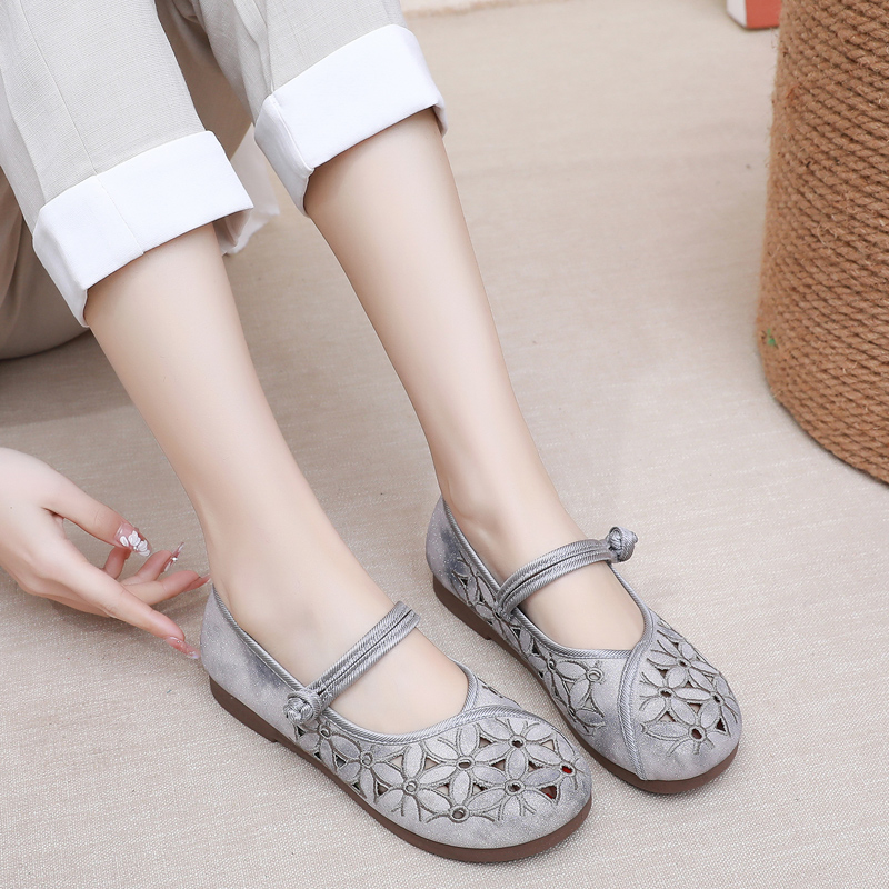 国风刺绣单网眼网鞋 老北京布鞋 镂空透气舒适妈妈鞋 2025夏新款 女鞋